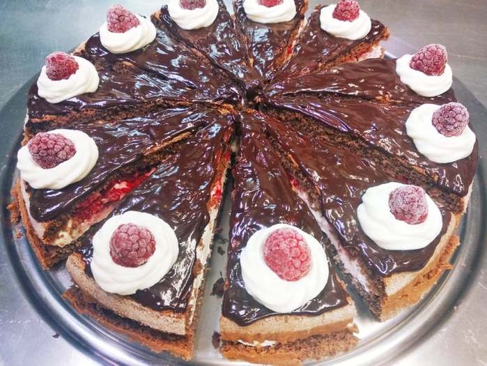 Čokoládový dort s mascarpone a malinami 800 Kč