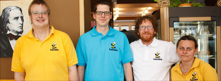 Helenu, Kristýnu, Kateřinu, Davida, Dana, Jiřího, Marka, Martina I, Martina II., Reného, Báru, Dagmar, Ivu, Lenku, Lucii I, Lucii II., Marii, Petru, Michala I., Michala II. a Jaromíra - pracovníky odpolední směny - od rána pro vás vaří a obsluhují, jsou to lidé se zdravotním znevýhodněním, kteří jsou našimi stálými zaměstnanci.